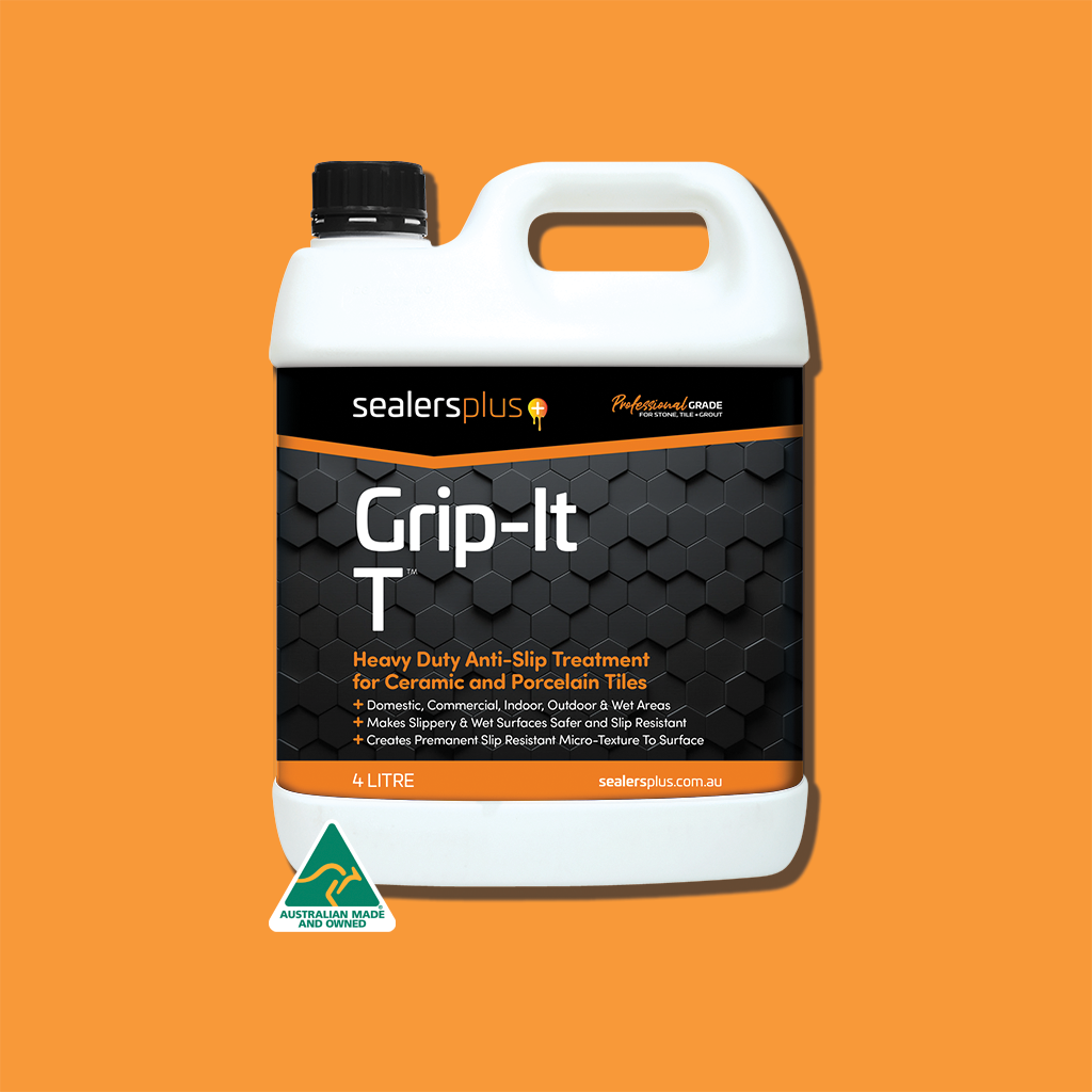 Grip-It T For Tiles is a Professional Grade anti-slip treatment to create a permanent slip resistant micro-texture on the glaze of the tile. It is NOT a sealer or a coating. It will not peel or wear off or go yellow. Makes wet, slippery, surfaces safer e.g. bathrooms, kitchens, lounge rooms, swimming pool areas, balconies, living areas, main entrances, corridors etc