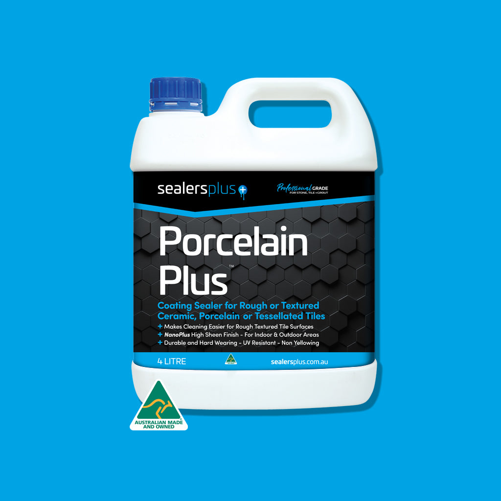 Porcelain Plus is Professional Grade, High Performance, NanoPlus Coating Sealer to provide a high sheen to rough, textured tile surfaces. Water Based, Breathable (Allows Moisture Vapour Transmission), Skuff Resistant, Non- Yellowing, UV Resistant, Hard Wearing and Durable.